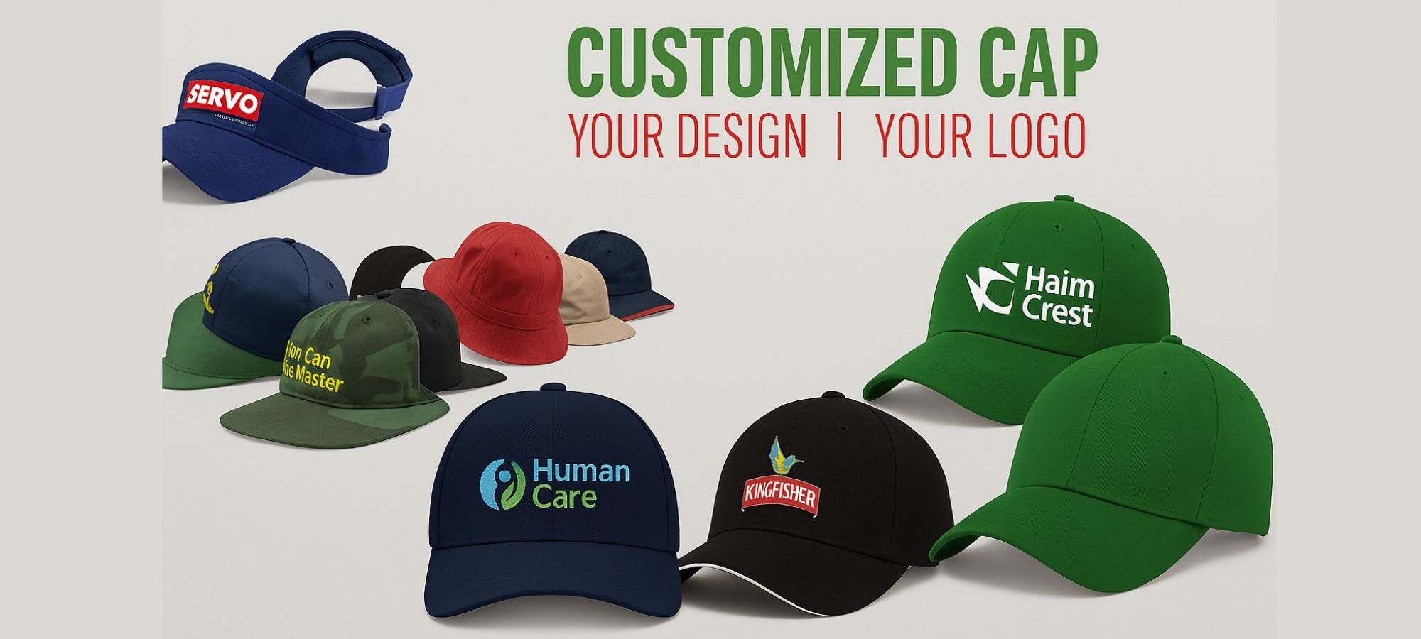 - Promotional Caps – Plain, dual-color & multi-color options (bulk packs from ₹7,500.00)